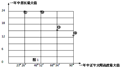3、单选题 读四地一年中正午太阳高度最大值及昼长最大值图,完成下题。