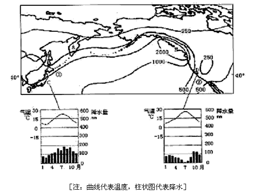 (1)图中气候分界线南北两侧的气候类型分别是________________和_______________,甲、乙两地降水季差异是___________________________________________________。原因是______________________________________________________________________、_______________________________________________________________________