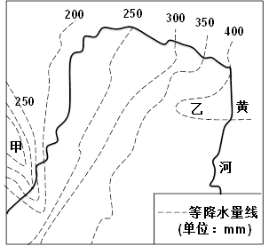 2、单选题  读某区域年等降水量线分布图,完成下列问题
