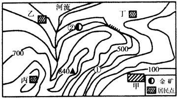 1.该河流的流向是2.甲、乙两地的相对高度有可能是