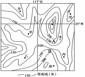B.甲、乙、丙、丁海拔都在100米以上150米以下