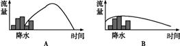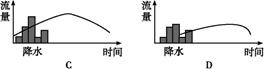 小题3:当图示地区植被覆盖率提高后,能正确表示该地区大雨后河流流量变化的是( )