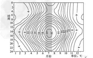 5、单选题 下图为某地全年平均气温(30 年平均)的等温线图,读图完成1-2 题。