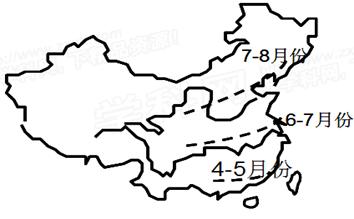 (2)6-7月雨带位于我国?,该地区出现持续一个月的阴雨天气,叫?