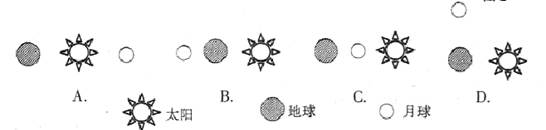 小题2:图中所示景象出现时,日、地、月三者的位置关系为