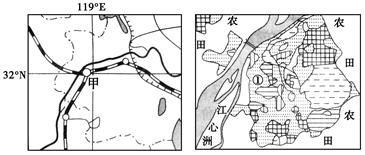 2、单选题 读甲城(南京)地理位置和城市用地结构图,回答问题。