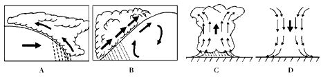 (3)受A气压中心的影响,图中C点盛行____ ____风,D点盛行_______________风,我国的天气以_________ 为主要特征。