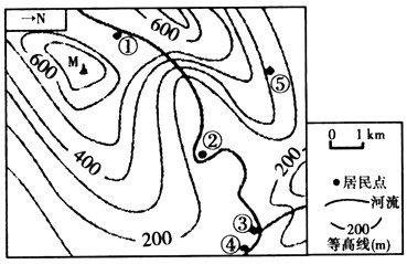 3、单选题 下图为北半球某地等高线地形图。读图完成1~3题。
