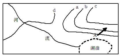 2、单选题 图2中,a、b、c为等压线,箭头表示A地风向,d为等高线。读图完成5—6题。