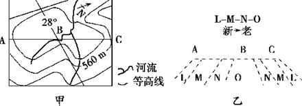 2、单选题 图甲为我国某区域等高线图,图乙为沿AC线所作的岩层剖面图。读图回答1~2题。