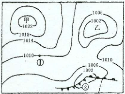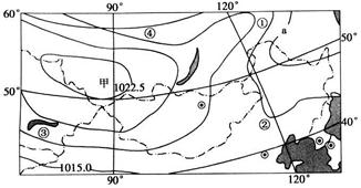 5、单选题 读某区域等压线形势图(单位hpa),完成1-2题。