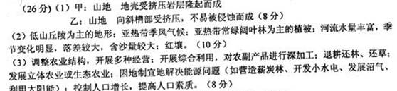 (1)通过图中资料分析甲、乙两地的地貌及成因。