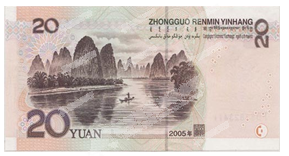 3、单选题  看下图,“我国第五套人民币20元票样图”回答下列各题。