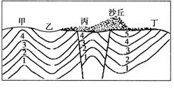 小题2:石油的密度较小,一般分布于背斜的顶部,因此在甲处开采石油比较适合。