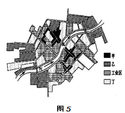 3、单选题  图5为我国某城市功能分区示意图,读图回答问题。