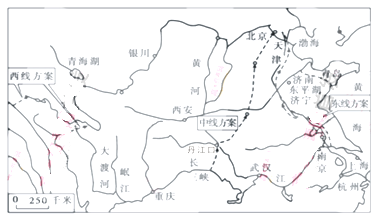 (2)南水北调东、中线工程调水的主要调入区是?(华北、西北)。东线工程主要利用京杭运河作为输水渠道,以节省投资,与中线工程相比,东线的主要不利条件是什么?(3分)