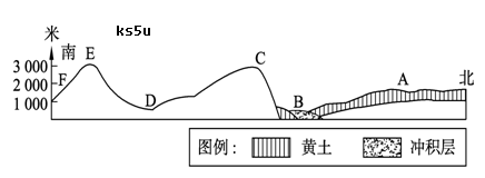 本题解析:直接根据图示的经纬度位置和该地区的地形剖面图判断,C为秦岭;B为渭河谷地;A为黄土高原;D为汉水谷地。
