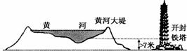 本题考查黄河上中下游的分界点及各河段的特征。图示为黄河某一河段的剖面图,河堤远远高于河两岸的地势,形成了“地上河”,黄河在中游流经了土质疏松的黄土高原,这里植被遭到破坏,地表得不到保护,在夏季多暴雨的情况下,出现严重的水土流失现象,大量的泥沙被携带,到下游河道变宽,流速减慢、泥沙沉积形成高高在上的“地上河”,所以我们推断黄河“地上河”段景观出现在黄河的下游。所以本题选择C选项。