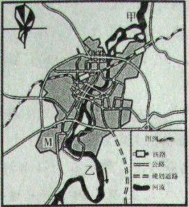 (3)M区为该城市的重化工业园区,分析其布局的合理性。(3分)