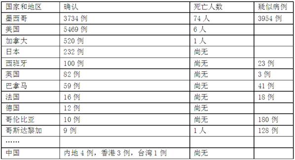 材料一:甲型H1N1流感病毒,是继禽流感病毒后发现的又一种新型传染病,目前尚无完全确认的特效药可以治疗。2009年4月,这一病毒的感染病例首先在美国和墨西哥发现。该病毒非常活跃,在人群间传播主要是以感染者的咳嗽和喷嚏为媒介,青壮年是易感染人群。各国甲型流感疫情统计(截止时间2009年5月20日15:30)
