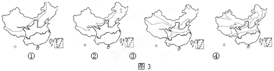 2、单选题 图3中按我国温度带、干湿地区、季风区与非季风区图、内流区域与外流区域图的顺序排列的是