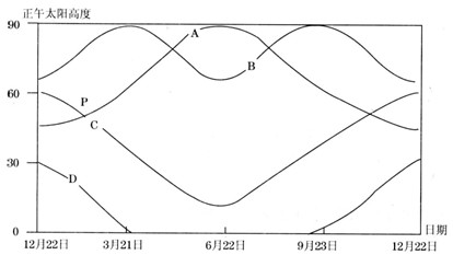 2、单选题 下图中ABCD分别是不同地区正午太阳高度随四季变化曲线,读图回答1—2题。