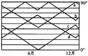 2、综合题 下图中a、b、c、d四条曲线分别表示A、B、C、D四个地点全年正午太阳高度的变化,读图回答: