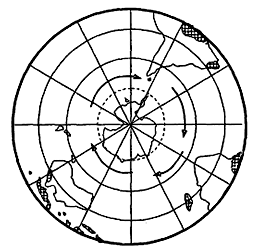 5、单选题 读以南极点为中心的半球图(如图),图中阴影部分表示地球上某种资源的分布,箭头表示洋流。根据图中提供信息,回答题。