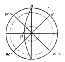 (2)据上题分析,b处为日落影子,即为该地昏线通过时的杆影。日出影子与日落影子之间的夹角为112°30′×2=225°,则该地该日昼长为225°÷15°/小时=15小时,已知昼长可以计算日出时间为4:30。