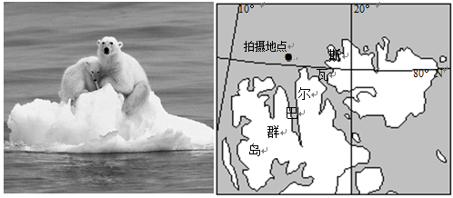 5、单选题 下图为某科考队于当地时间2013年2月28日10时30分在斯瓦尔巴群岛考察时拍摄的照片,右图为拍摄地点位置图。读图回答题。