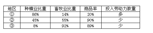 4、单选题 读几个地区农业基本情况比较表,完成1~2题。