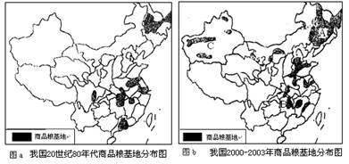 2、综合题 读“我国商品粮基地分布变化图”,回答下列问题: