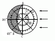 4、单选题 杭州(30°N)某同学对传统的太阳能热水器进行改造(如右下图):将太阳能热水器集热板装在一个大玻璃箱里,并将热水器的支架改造成活动形式。12月22日正午,为使热水器受热最多,需调节活动支架,使热水器集热板与地面的夹角α为