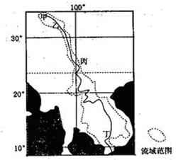 小题1:图中河流的乙~丙河段流域范围非常狭窄,其主要原因