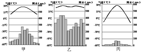 小题3:甲为亚热带季风气候;乙图主要是热带雨林气候。亚热带季风气候主要分布在中国,热带雨林气候主要分布在巴西。