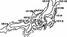 下图示意日本本州岛部分地区樱花初放日期。完成下面试题。