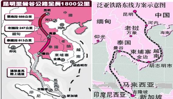 1、单选题 下图是泛亚铁路的东线工程和中线工程要飞的蛋蛋(自昆明至曼谷)的工程示意图,读图回答下列各题。