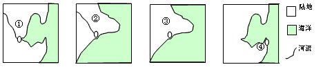 3、单选题 下图中从自然条件考虑,最可能发展为港口城市的是
