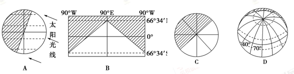 本题解析:冬奥会正值北半球冬半年,北极点周围出现极夜现象。B图为冬至日光照图。故A正确。