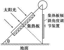 2、单选题 杭州(120°E,30°N)某同学对传统的太阳能热水器进行改造(如下图):将太阳能热水器集热板装在一个大玻璃箱里,并给热水器的支架安装了可以根据每天正午太阳高度而调节集热板倾斜角度(图中θ角)的装置。据此完成下题。