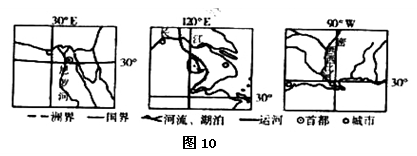 1、单选题 图10为“北纬30°附近部分区域图”,读图,完成21~22题。