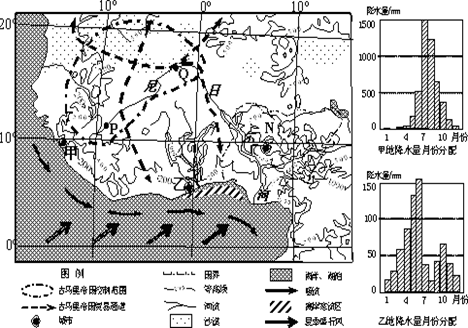 材料一? 古马里是13世纪-16世纪期间西非草原上繁荣的贸易帝国。图示意该区域的地理环境。