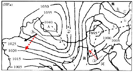 (4)根据图中天气形势图判断,华北地区盛行东南风;塔里木盆地盛行东北风(如下图);在我国内蒙古高原东部和东北地区,受低压和低压槽影响,形成阴雨天气。故选D。