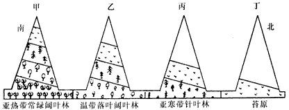 2、甲山地垂直自然带分布较丁山地复杂,其主要原因是甲山地