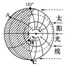 (3)A、B、C三点昼长由长到短的排列顺序是        ,自转线速度由大到小的排列是           。