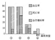 小题2:根据图中信息可知,属于出生率低、死亡率低、自然增长率低是1、2、3等国家。选择A项。