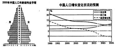 材料二:我国2000年人口年龄结构图(左图)和我国人口增长预测图(右图).