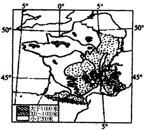 (4)法国北部位于大陆西岸,终年受西风控制,形成温带海洋性气候;我国东北地区位于大陆东岸,海陆热力性质差异显著,形成温带季风气候。