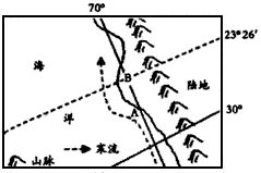 地中海、黑海(A)地区海陆轮廓、山脉分布示意图,以及A、B之间热力环流图。