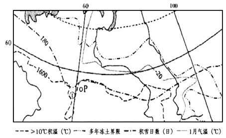 5、单选题 下面为世界某地区气候资料及多年冻土等值线图,读图回答1—3题。
